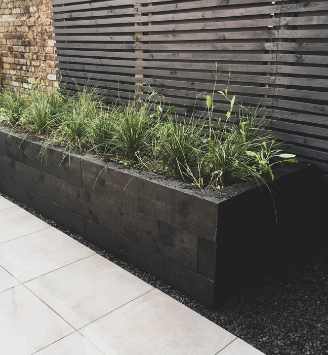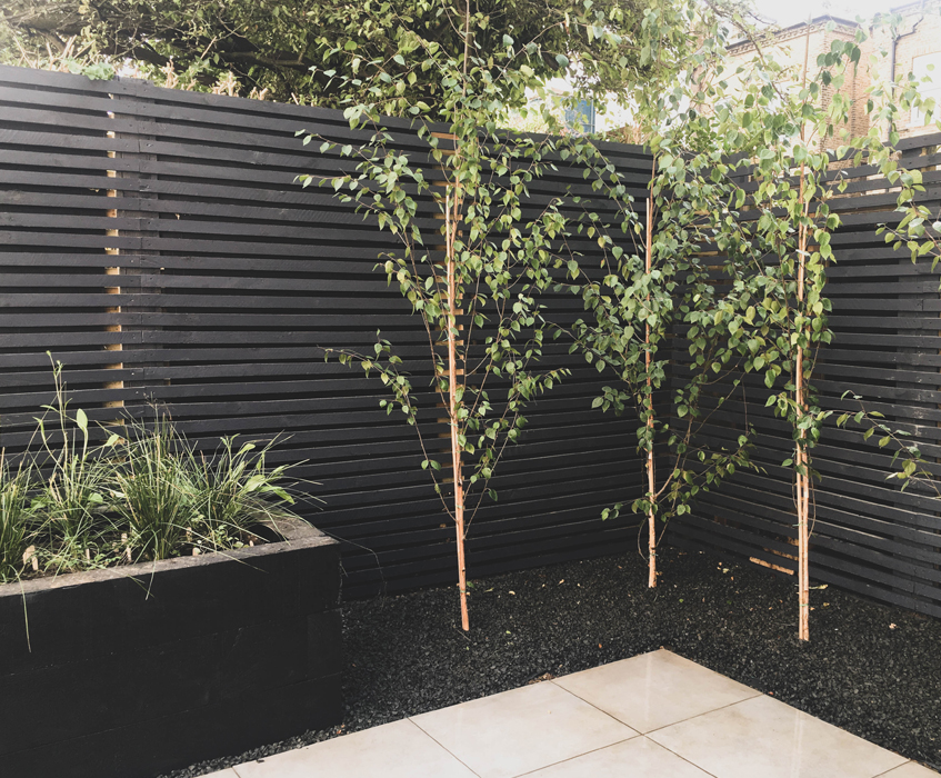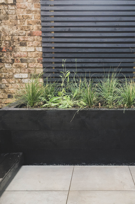 Unlike most London gardens, this garden takes on the shape of a square. With trees to the rear and side, it is fairly sheltered with a good sense of enclosure.