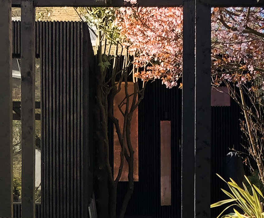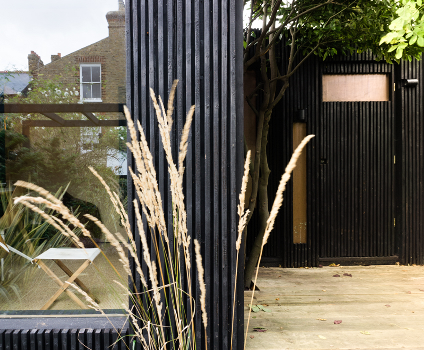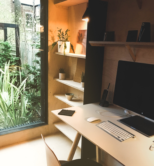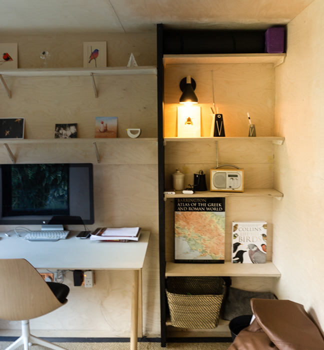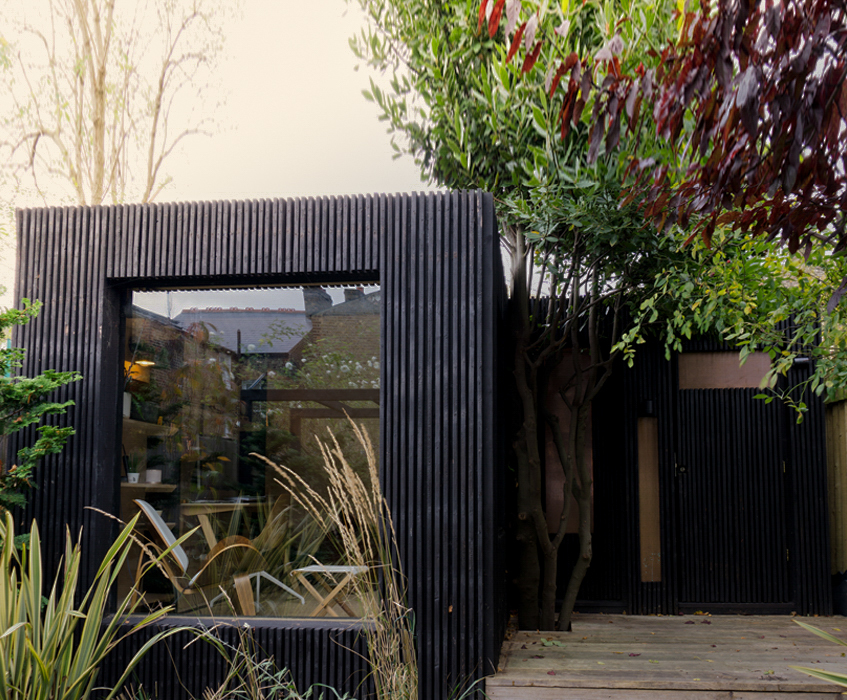 Set at the bottom of this leafy South London garden is a summer house we designed around a much-loved bay tree. The clients wanted a space for a yoga studio, work studio and shed.